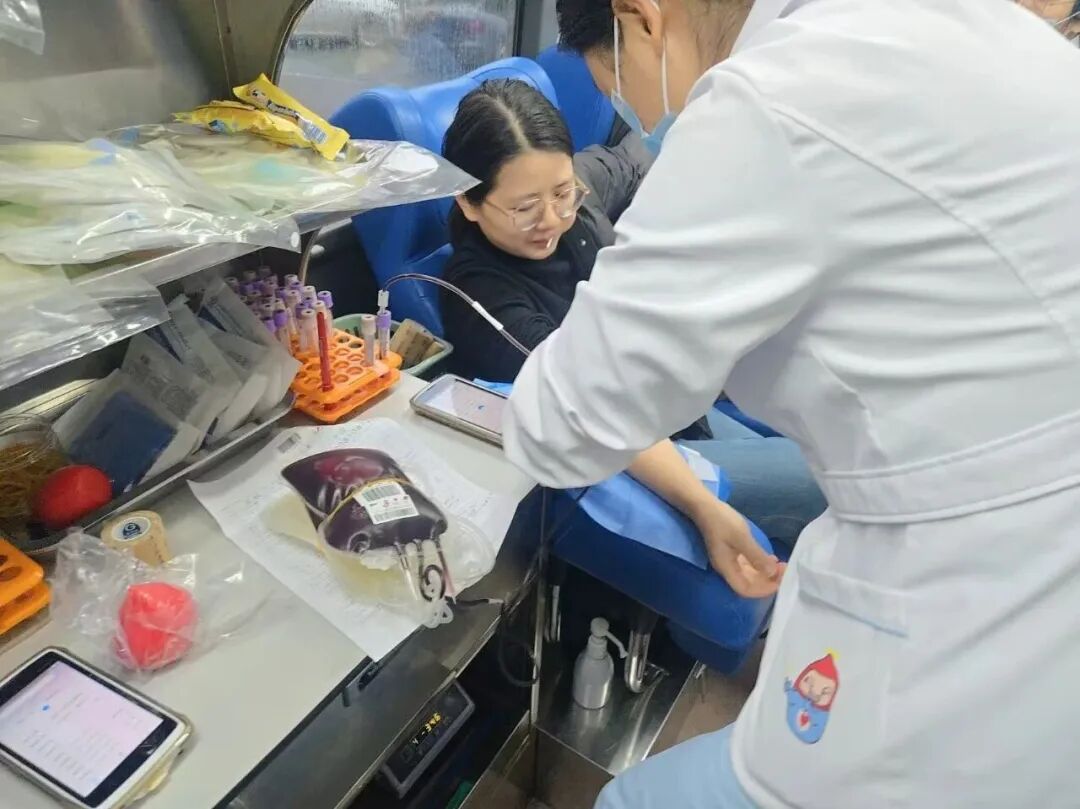 从临床科室的业务骨干到行政后勤的工作人员,从年资较深的资深医师到刚入职的青年医护,大家纷纷放下手中工作,满怀赤诚与爱心有序参与。采血队伍中,党员同志主动靠前,分享献血知识、缓解同伴紧张情绪;青年医护们朝气蓬勃,挽起衣袖毫不犹豫;许多医师刚结束临床工作,顾不上休息,第一时间赶到采血现场。汩汩热血流入储血袋,鲜红的色彩承载着医者的仁心大爱,更彰显出党员同志冲锋在前、无私奉献的鲜明本色。